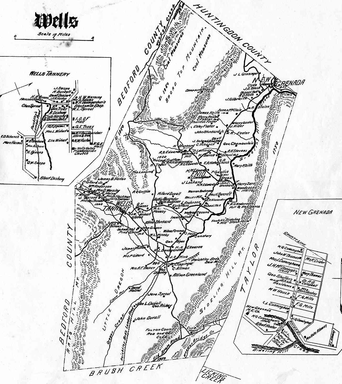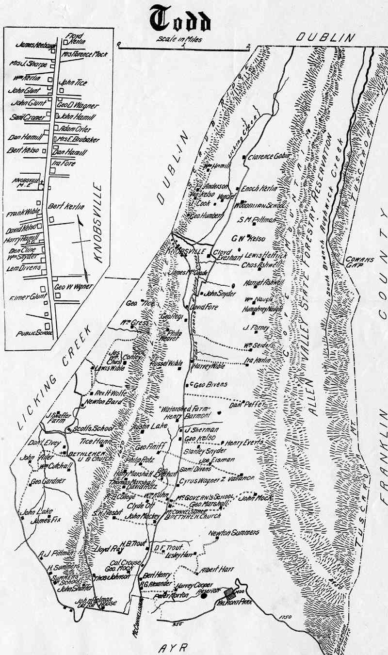 Township maps of Fulton County Pennsylvania from the Atlas of Fulton County, Pennsylvania compiled and published by Frank P. Plessinger, County Surveyor, Locust Grove, PA. and Francis M. Taylor, C.E., McConnellsburg, PA., 1916.