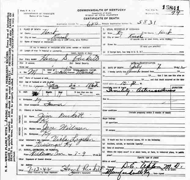 Puckett, Louis, 1919, Death Certficate |