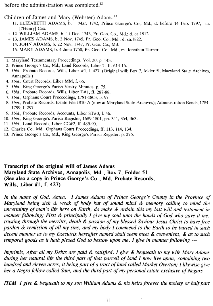 William Webster of Prince George's County, Maryland